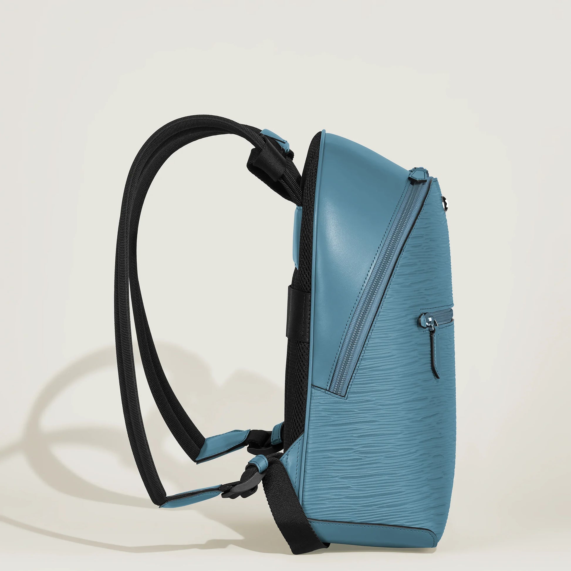 Questo mini zaino 4810 è un moderno must-have per lo stile di vita urbano attivo, progettato sia per il comfort che per l'utilità. Realizzato in pelle blu fumo con un elegante motivo di corteccia d'albero, la sua forma aerodinamica contiene facilmente tutti i tuoi oggetti essenziali quotidiani. Una tasca anteriore con cerniera fornisce un rapido accesso agli oggetti, mentre due tasche interne aperte mantengono le cose organizzate. Due passanti per penna e un emblema Montblanc posizionato con gusto aggiungono un raffinato tocco finale.