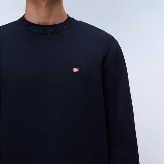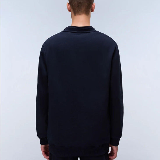 Felpa a vestibilità regular, dalla silhouette classica e proporzionata, fedele alla taglia. Presenta finiture a costine e dettagli ricamati. Composizione: 80% cotone, 20% poliestere. Il modello è alto 1,89 cm e indossa la taglia L.