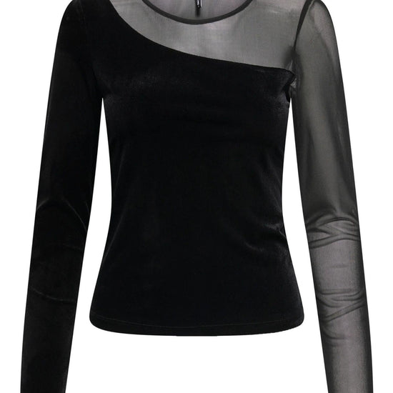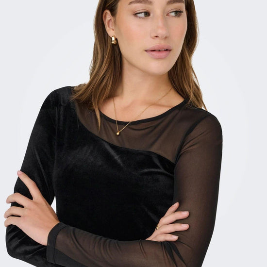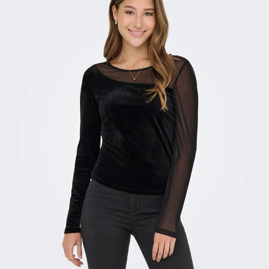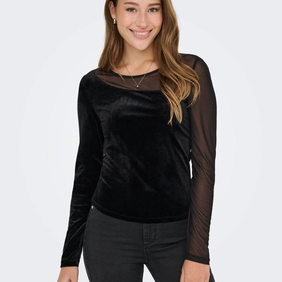 Che si tratti di una festa in giardino, di una serata fuori o di una cena al ristorante, questo top elegante è la scelta perfetta per ogni occasione speciale. Tipologia di prodotto: Top. Collo: Girocollo. Maniche: Lunghe. Lunghezza: Corta. Dettagli extra: Inserto in pizzo. Vestibilità: Regular fit. Composizione: 93% poliestere, 7% elastan.