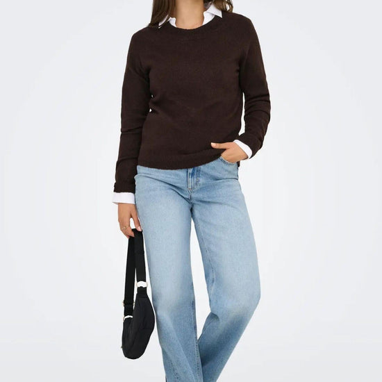 Pullover lavorato a maglia dal design semplice e confortevole, perfetto per ogni occasione. Realizzato in un morbido mix di poliestere riciclato, poliestere, nylon ed elastan, offre calore, elasticità e una vestibilità comoda. Presenta collo tondo, maniche lunghe e polsini a coste per un tocco classico e versatile. Composizione 50% poliestere riciclato, 43% poliestere, 4% nylon, 3% elastan.
