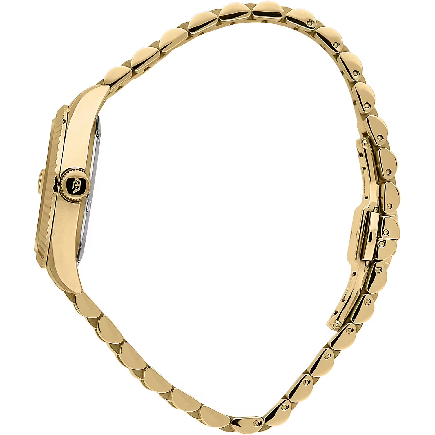 L’orologio Philip Watch Caribe Lady è una dichiarazione di stile in formato compatto. La cassa rotonda da 31 mm in acciaio color oro lucido e satinato esalta il polso con un tocco di luce raffinata. Il bracciale in metallo dorato si abbina perfettamente alla cassa, mentre il vetro zaffiro garantisce protezione e nitidezza assoluta. Dotato di movimento al quarzo Swiss Made, questo modello offre tutta la precisione dell’orologeria svizzera in un design pensato per la donna moderna.