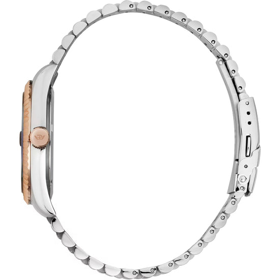 Bracciale: Acciaio bicolore silver e rose gold con chiusura diver a pulsanti e blocco di sicurezza.