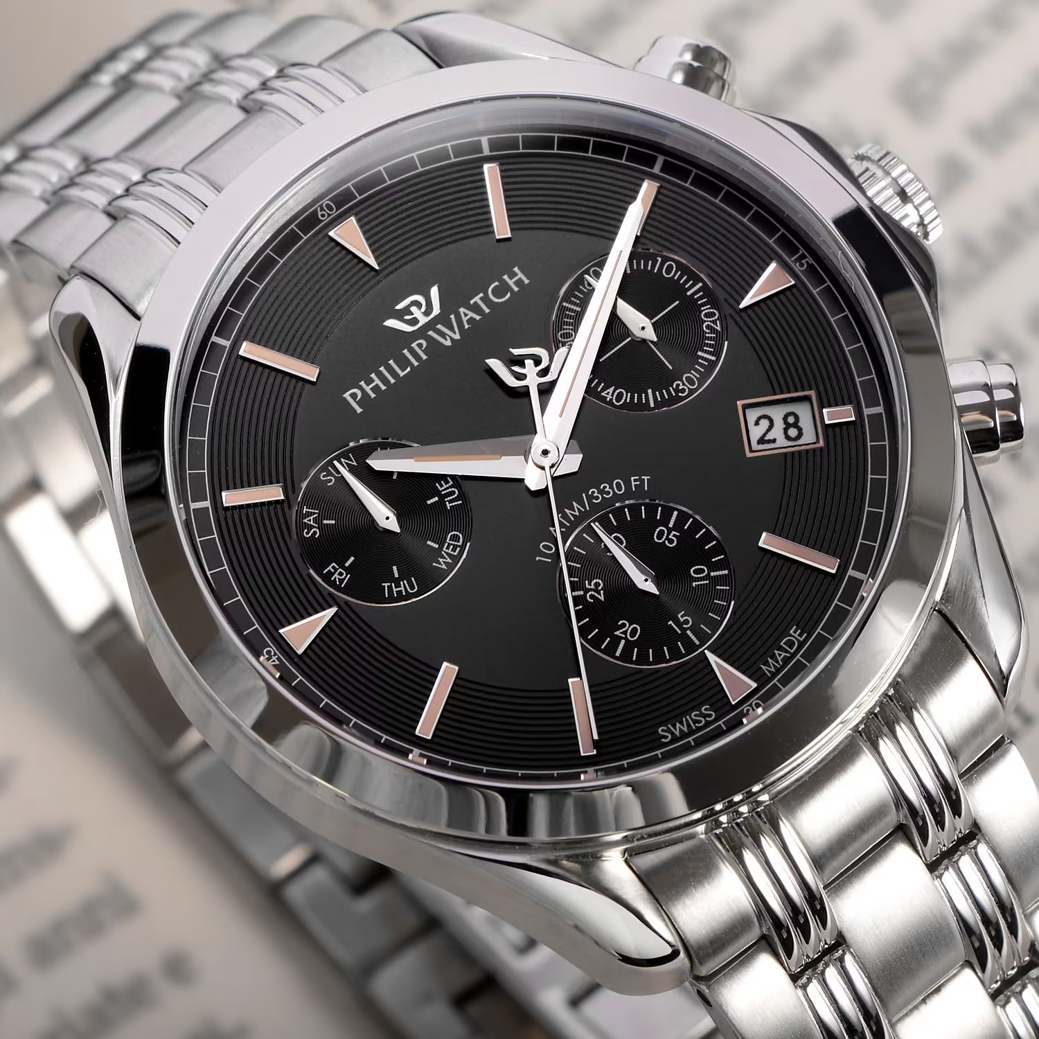 Philip Watch R8273665004 – Cronografo al quarzo Swiss Made, quadrante nero, cassa 41mm