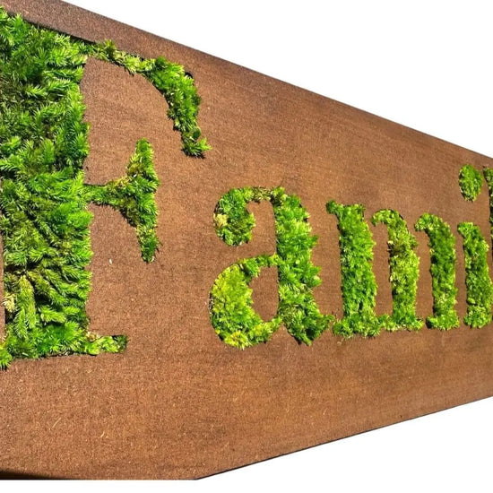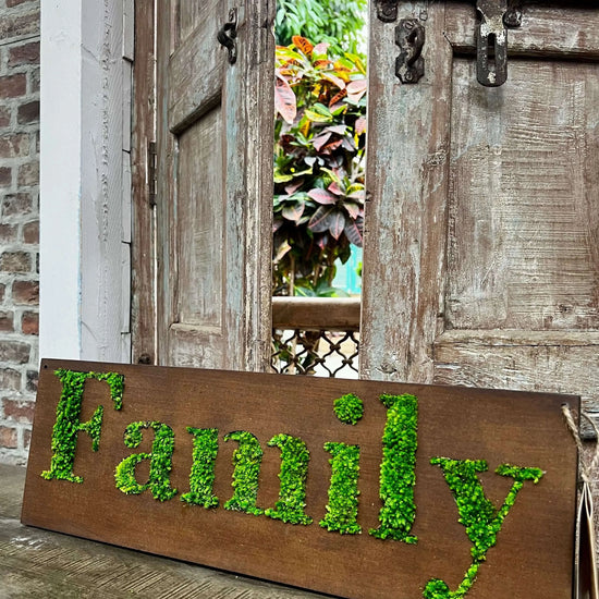 Quadro in Muschio Stabilizzato con Scritta FAMILY Rettangolare – 40x18 cm | Decorazione Verde