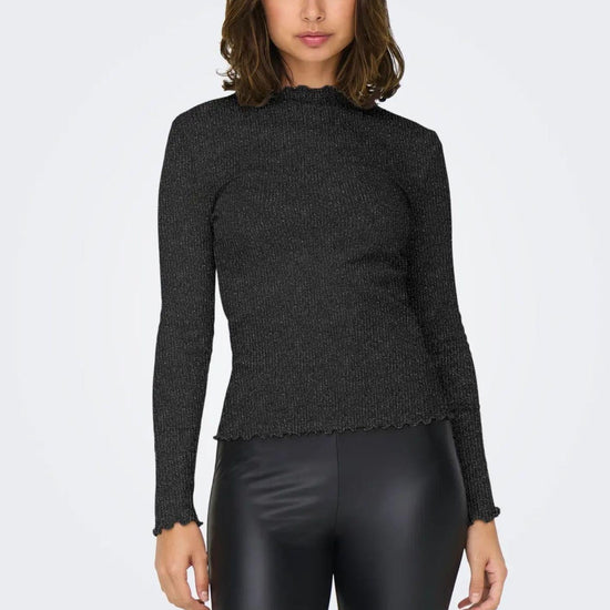 Il cotone è realizzato con fibre naturali, creando un tessuto morbido e traspirante. Maglia girocollo, maniche lunghe, dettaglio glitter, dettaglio a costine, regular Fit
