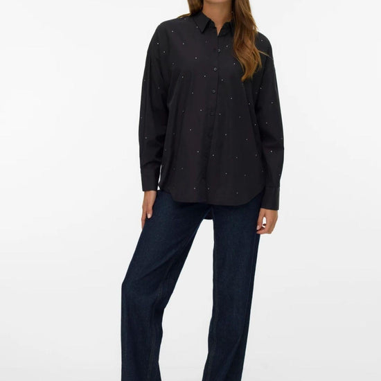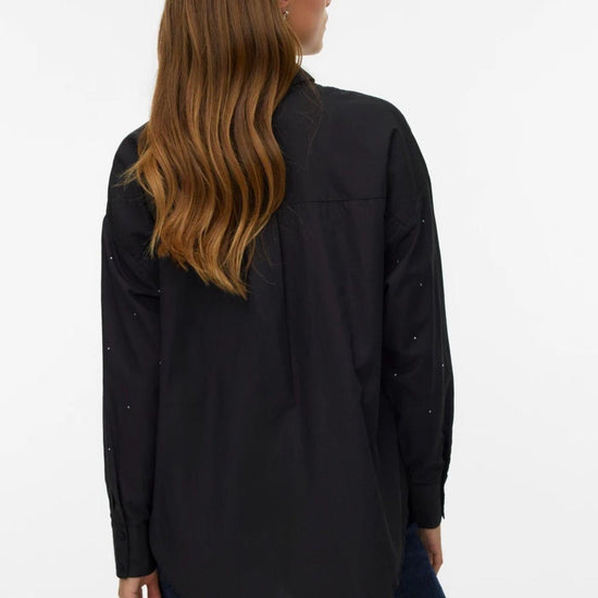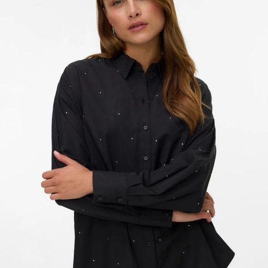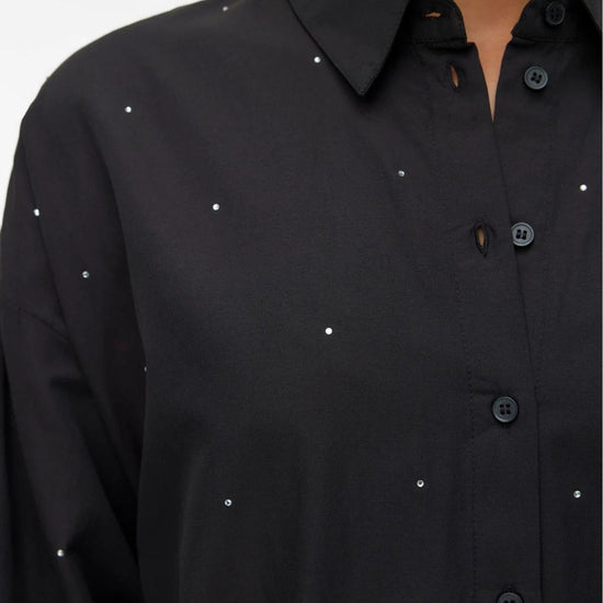 Camicia maniche lunghe, posini con bottone, chiusura con bottone, dettagli con strass, Oversize fit 55% Poliestere riciclato