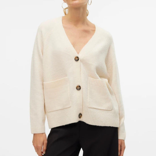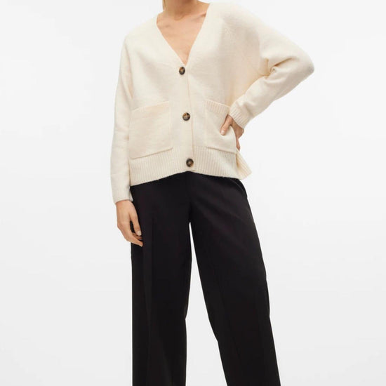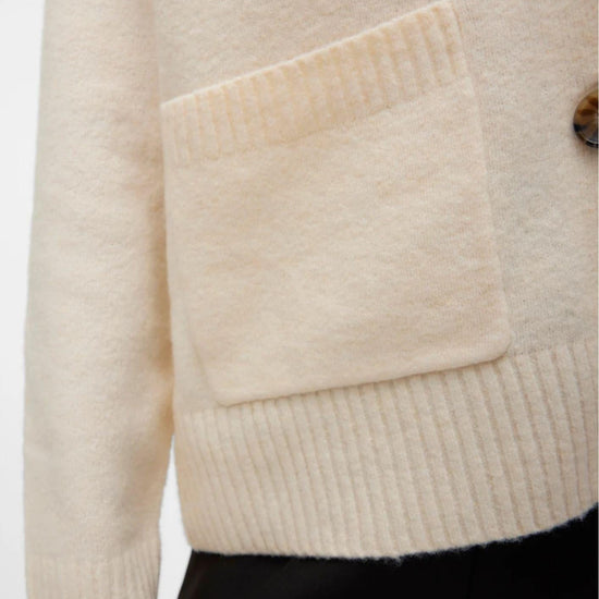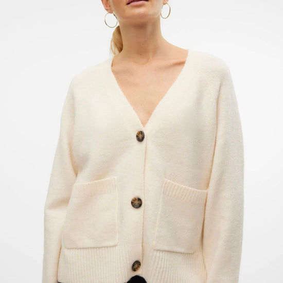 Cardigan in maglia pesante dal design avvolgente e versatile, ideale come strato extra per aggiungere calore e stile a ogni outfit. Presenta collo a V, maniche lunghe, polsini a coste, chiusura con bottoni e pratiche tasche frontali. La vestibilità loose fit garantisce comfort e libertà di movimento, perfetto da indossare come giacca in maglia o sopra look eleganti per un tocco di morbidezza e raffinatezza. Composizione 53% poliestere riciclato, 32% poliestere, 7% acrilico, 5% RWS, 3% elastan.