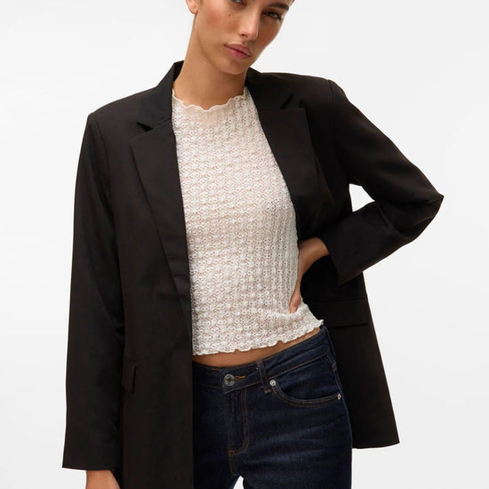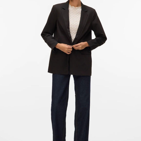 Blazer con collo reverse dal taglio slim fit, pensato per aggiungere un tocco di classe e raffinatezza a qualsiasi look. Versatile e moderno, si abbina facilmente a t-shirt e jeans per un outfit casual chic o a pantaloni eleganti per uno stile più formale. Dotato di tasche frontali e fodera in poliestere per un comfort ottimale. Esterno 50% poliestere riciclato, 30% poliestere, 18% viscosa, 2% elastan. Imbottitura 100% poliestere.