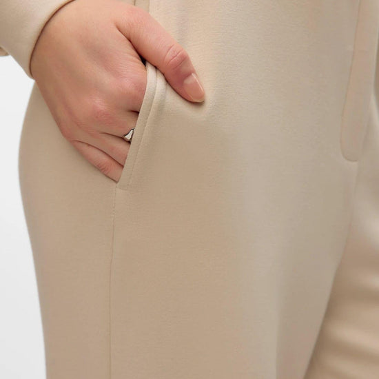 Pantaloni in felpa dal design comodo e moderno, un capo essenziale perfetto per look rilassati e contemporanei. Realizzati in morbida viscosa LENZING ECOVERO, poliestere riciclato ed elastan, offrono una vestibilità regular fit con vita alta che valorizza la figura. Dotati di chiusura con cordino e pratiche tasche laterali, garantiscono comfort e libertà di movimento. Ideali da abbinare a t-shirt, sneakers chunky e camicia in denim per un outfit casual e disinvolto. Composizione 50% viscosa LENZING ECOVERO, 45% poliestere riciclato, 5% elastan.