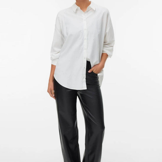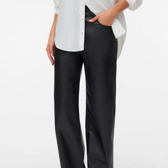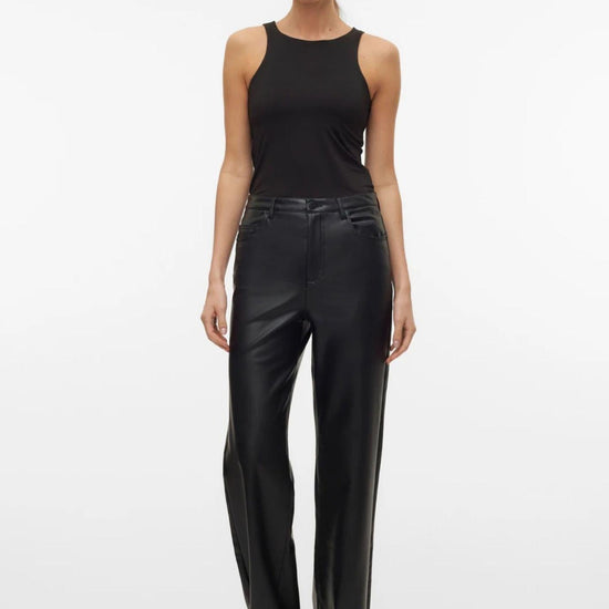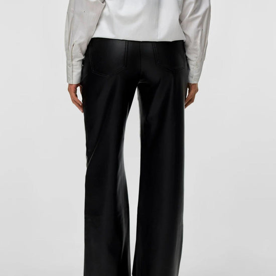 Pantaloni wide fit a gamba larga dal design elegante e contemporaneo, un must-have che unisce comfort e stile senza tempo. La vita alta e la vestibilità fluida valorizzano la silhouette, rendendoli perfetti per look casual o più raffinati. Modello lungo con chiusura a bottoni e zip, tasche anteriori e posteriori. Realizzati in tessuto rivestito che dona un effetto sofisticato e moderno. Composizione 96% poliestere rivestito di poliuretano, 4% elastan rivestito di poliuretano.