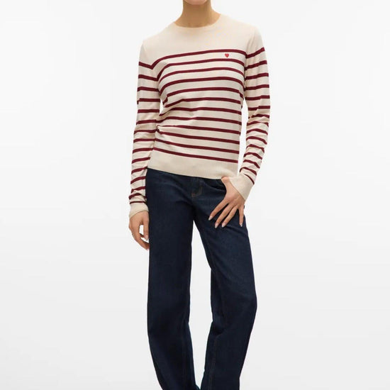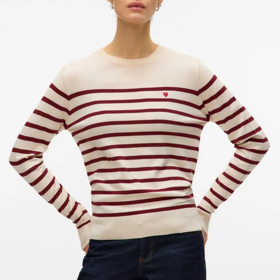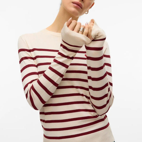 Vero Moda Pullover Donna Dory Beige e Bordeaux