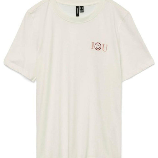 T-shirt Vero Moda da donna modello Frigga dal design essenziale e contemporaneo, con maniche corte e stampa con logo sul petto. Realizzata in 100% cotone biologico, offre morbidezza, traspirabilità e comfort naturale per luso quotidiano. Un capo versatile e sostenibile, perfetto per completare look casual e moderni. Composizione 100% cotone biologico.