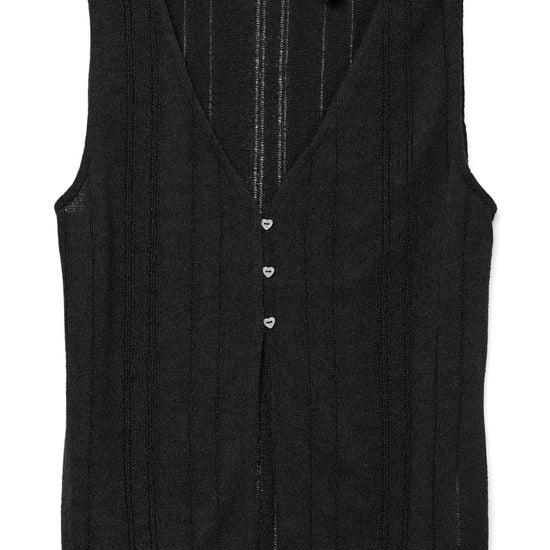 Top basic senza maniche con scollo a V e abbottonatura frontale, un capo essenziale e versatile perfetto per completare qualsiasi outfit. Realizzato in morbido jersey a maglia circolare, offre comfort e una vestibilità regular ideale per luso quotidiano. Facile da abbinare a camicie, jeans mom o pantaloni per un look casual e curato. Tessuto 60% poliestere riciclato, 40% poliestere.