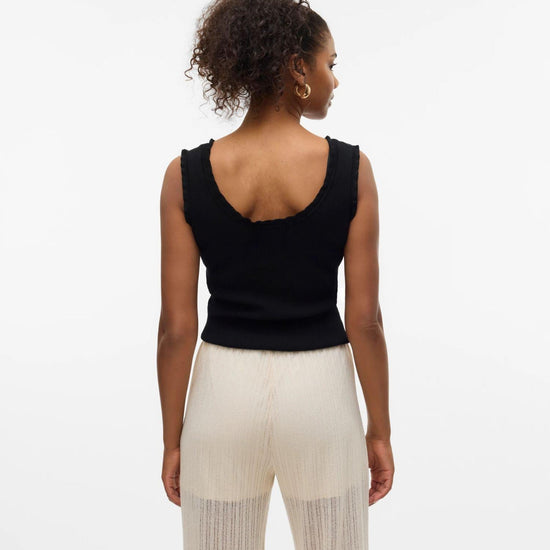 Pullover senza maniche con scollo a U dal design semplice e versatile, un capo essenziale adatto a tutte le stagioni. Realizzato in morbida viscosa e poliestere riciclato, offre comfort, traspirabilità e una vestibilità regular fit ideale per ogni occasione. Perfetto da indossare da solo o come strato sotto giacche e camicie, abbinato a jeans o pantaloni per un look casual e curato. Composizione 78% viscosa, 22% poliestere riciclato.