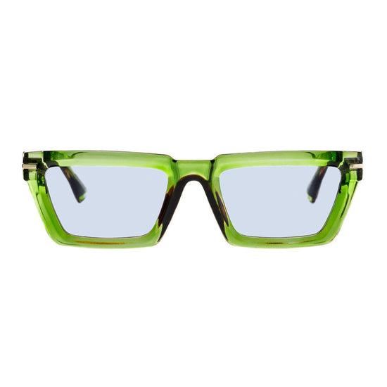 Le aste multicolor – verde, nero e avana – sono arricchite da una struttura interna in argento, che conferisce profondità visiva e una raffinata eleganza contemporanea. Le lenti da sole offrono una protezione ottimale e completano il look con un tocco distintivo e moderno.