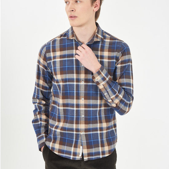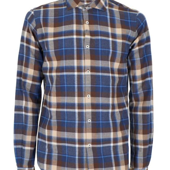 Yes Zee Camicia Collo francese Uomo Blu Marrone Beige 100% Cotone