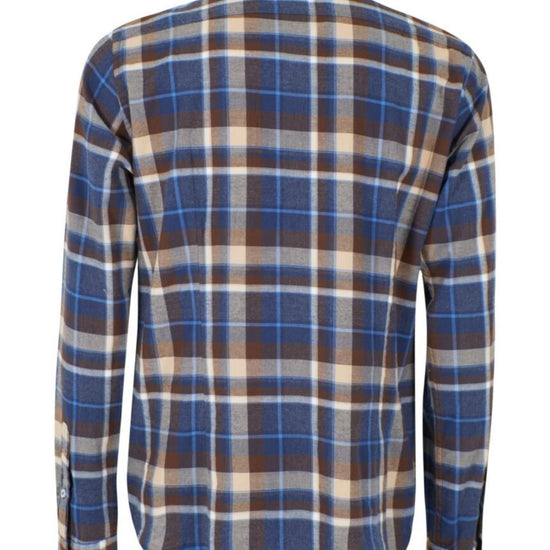 Yes Zee Camicia Collo francese Uomo Blu Marrone Beige 100% Cotone
