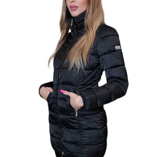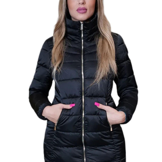 Il Piumino Mid Yes Zee combina eleganza e comfort, ideale per i mesi più freddi. Il collo alto avvolgente dona una sensazione di calore e protezione, mentre la trapuntatura orizzontale su tessuto leggermente lucido conferisce un aspetto sofisticato. Le tasche con zip dorate aggiungono un tocco di stile, rendendolo un capo glamour e funzionale. Il logo discreto in gomma sulla manica completa il design, per un look raffinato che si abbina facilmente a vari outfit invernali.