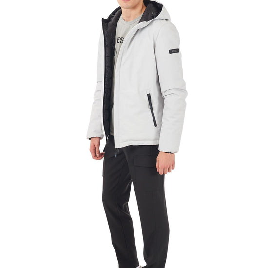 Giubbino uomo reversibile chiusura a zip coperta due tasche con zip sui fianchi. 100% poliestere.