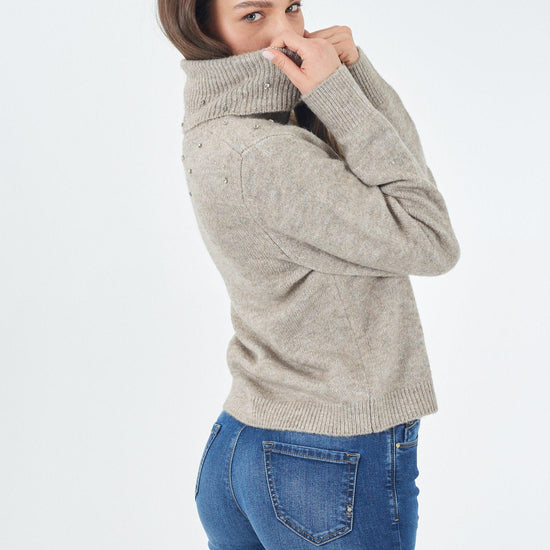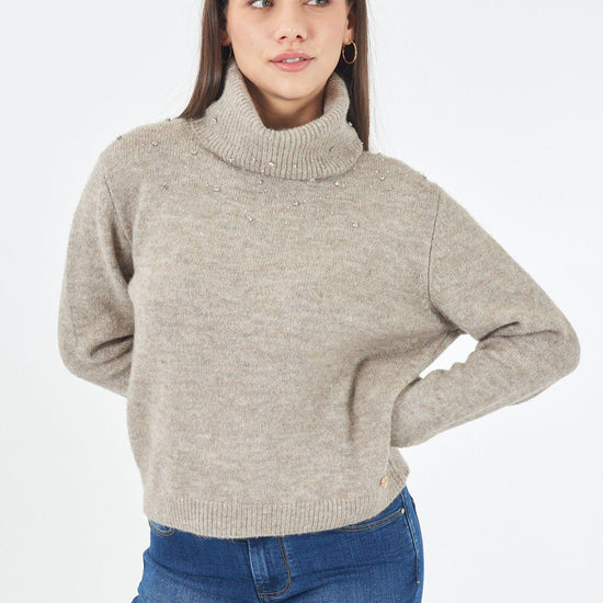 Maglia a collo alto con applicazioni, collo polsini lunghi e girovita in costine. 67% Acrilico 30% Poliestere 3% Elastane